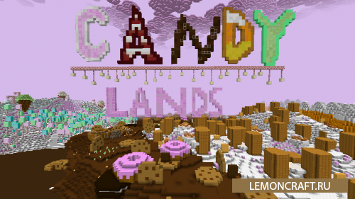 Мод на конфетную страну Candylands перенесет вас в мир сладостей, где вы встретите новых мобов, попадете в джунгли из леденцов, окунетесь в шоколадные океаны, увидите карамельные водопады и вулканы с джемом.